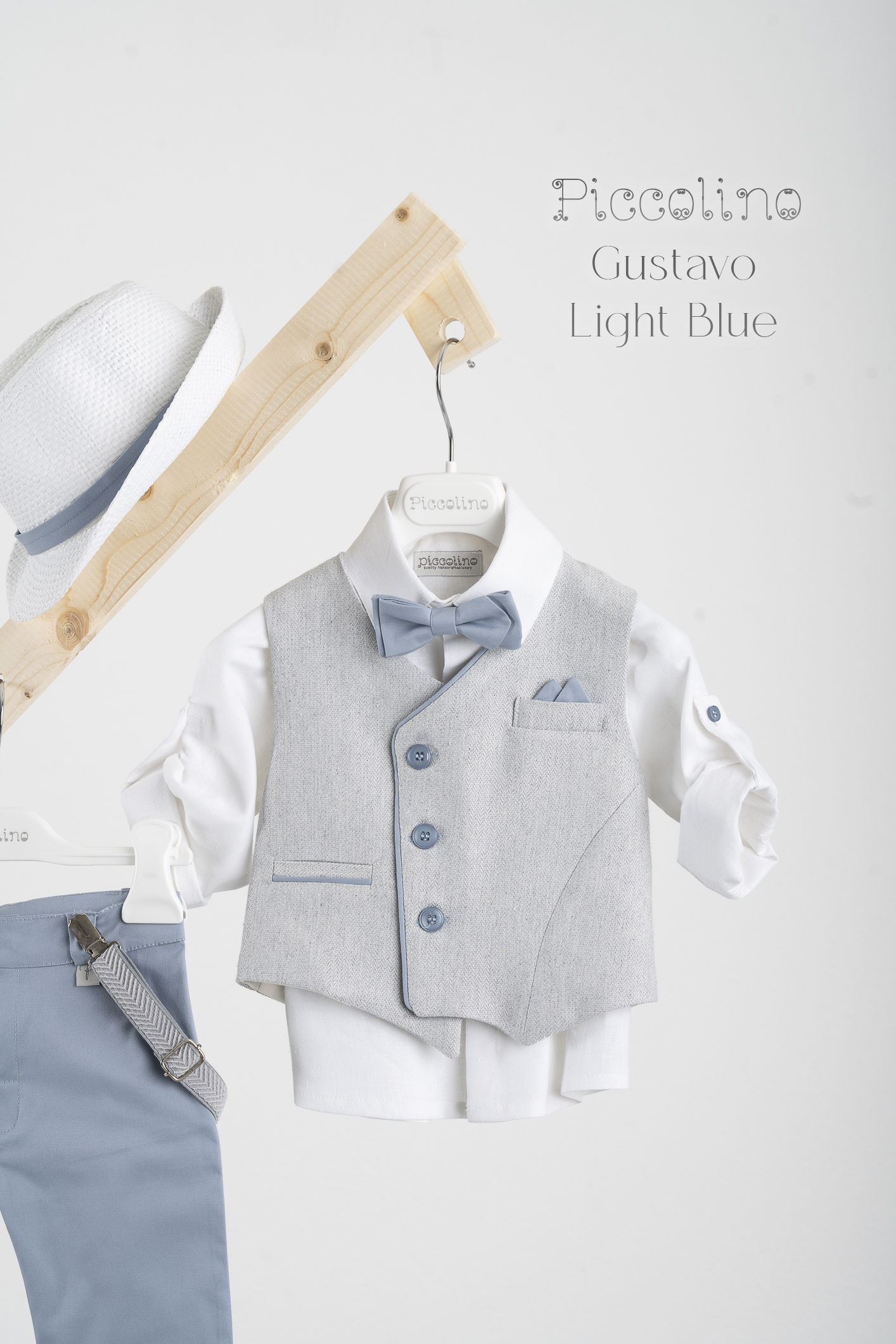 Βαπτιστικό κοστούμι Piccolino Gustavo σε χρώμα Light blue. Περιλαμβάνει: