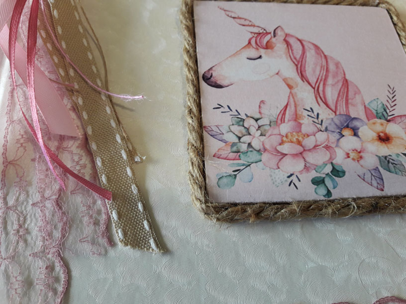 Βιβλίο ευχών μονόκερος σε αποχρώσεις ροζ, σάπιο μήλο και εκρού.