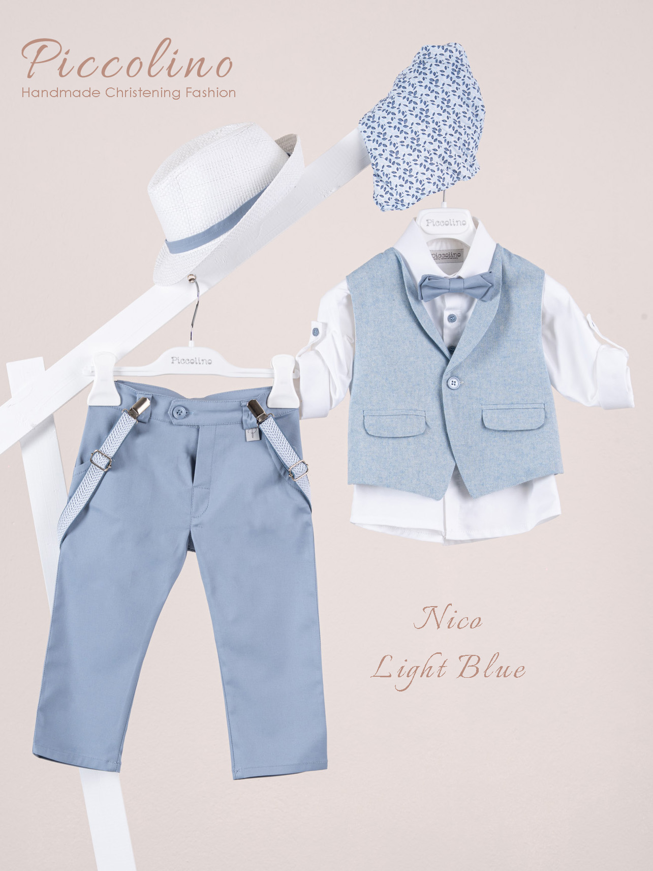 Βαπτιστικό κοστούμι Piccolino Nico σε χρώμα Light Blue. Περιλαμβάνει: