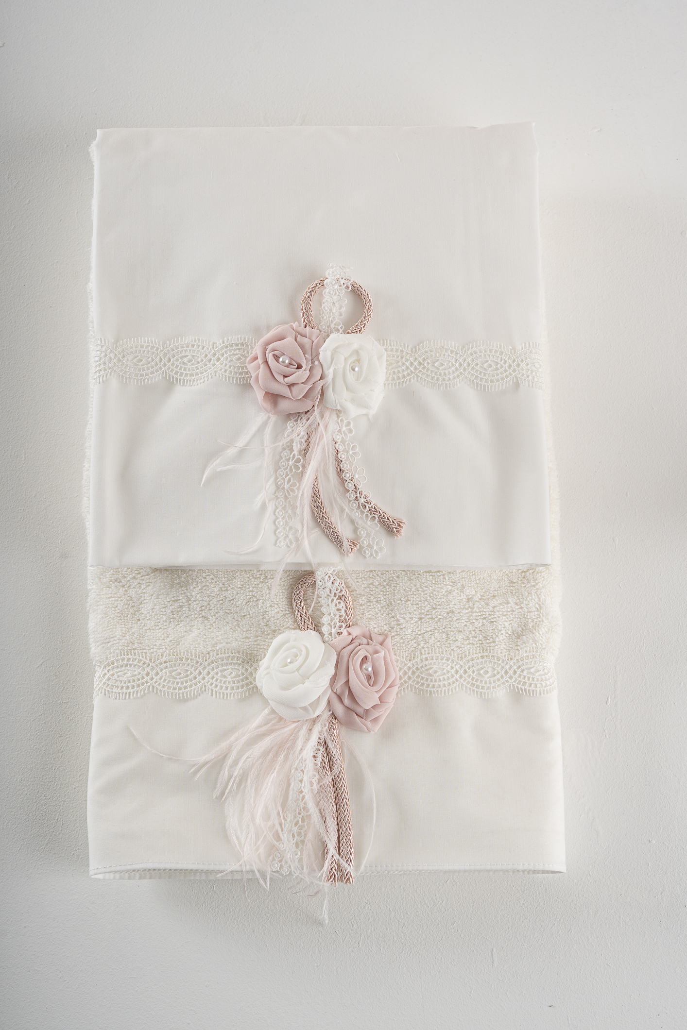 Σετ λαδόπανα Piccolino Florence Ivory. Αποτελείται απο βαμβακερό λαδόπανο, πετσέτα 140*70εκ, εσώρουχα και πετσέτα ιερέα 30*50εκ. Στολισμένα με χειροποίητα υφασμάτινα λουλούδια.