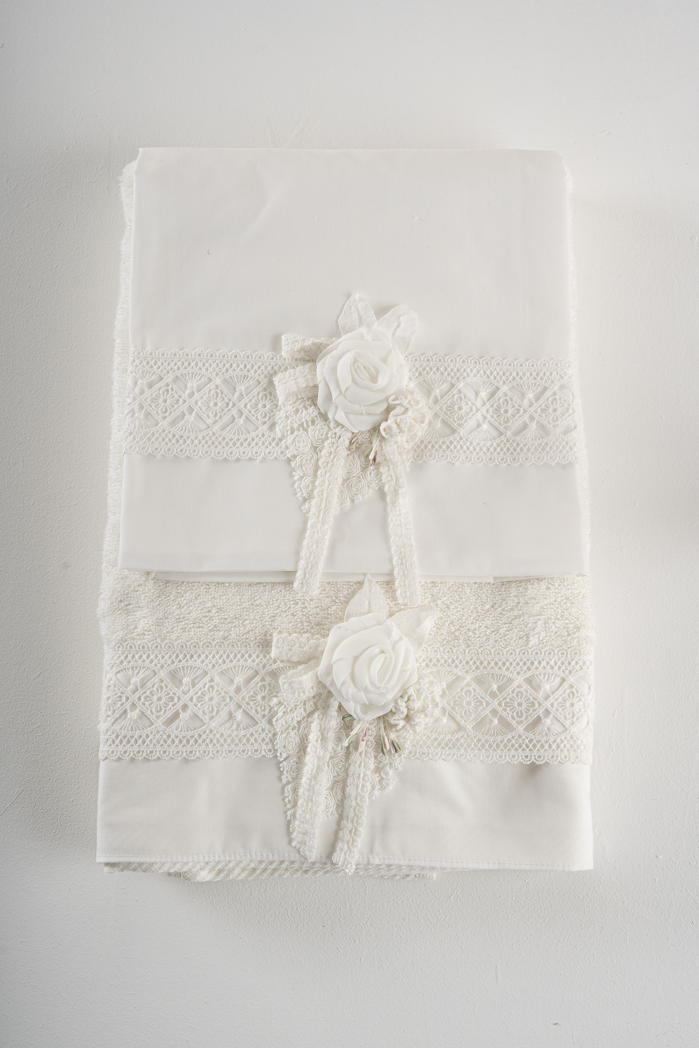 Σετ λαδόπανα Piccolino Thea Ivory. Αποτελείται απο βαμβακερό λαδόπανο, πετσέτα 140*70εκ, εσώρουχα και πετσέτα ιερέα 30*50εκ. Στολισμένα με χειροποίητα υφασμάτινα λουλούδια.