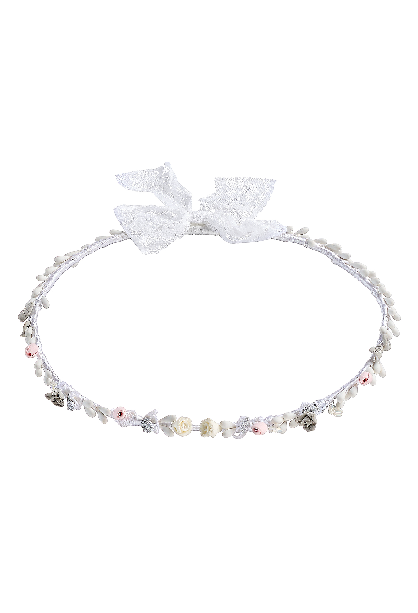 Στέφανα γάμου με λουλούδια πορσελάνης χρώματος εκρού και ροζ.
