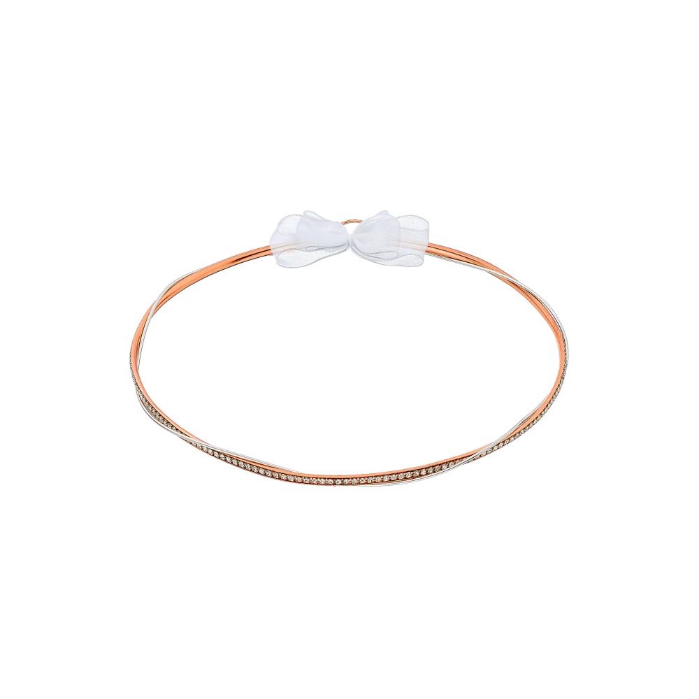Στέφανα επάργυρα 327 με μία ασημί και μία ροζ-χρυσό βέργα με κρυσταλλάκια.