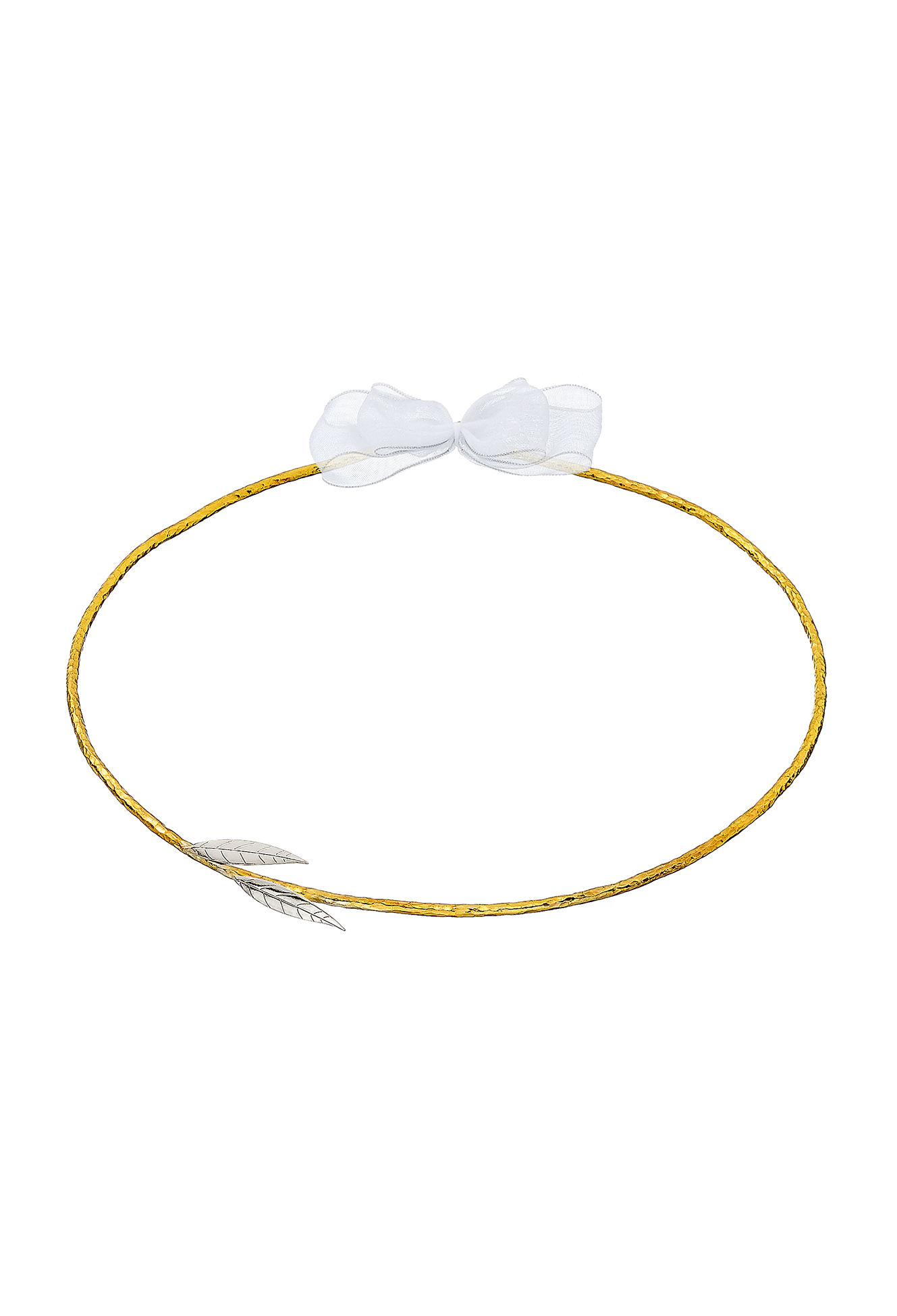 Στέφανα γάμου με επιχρυσωμένα με ασημί φυλλαράκια.
